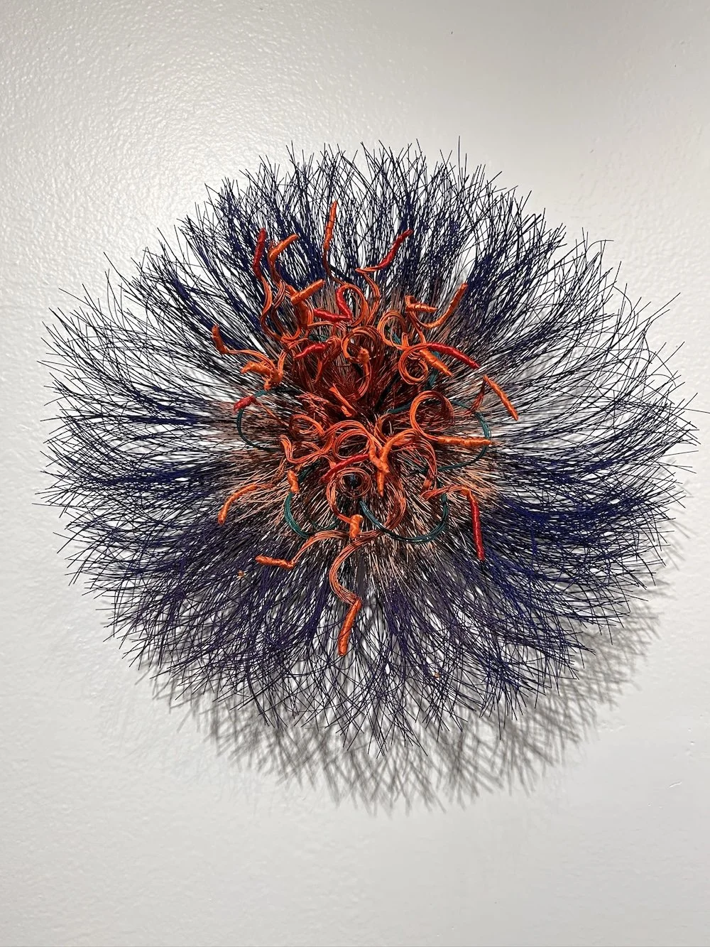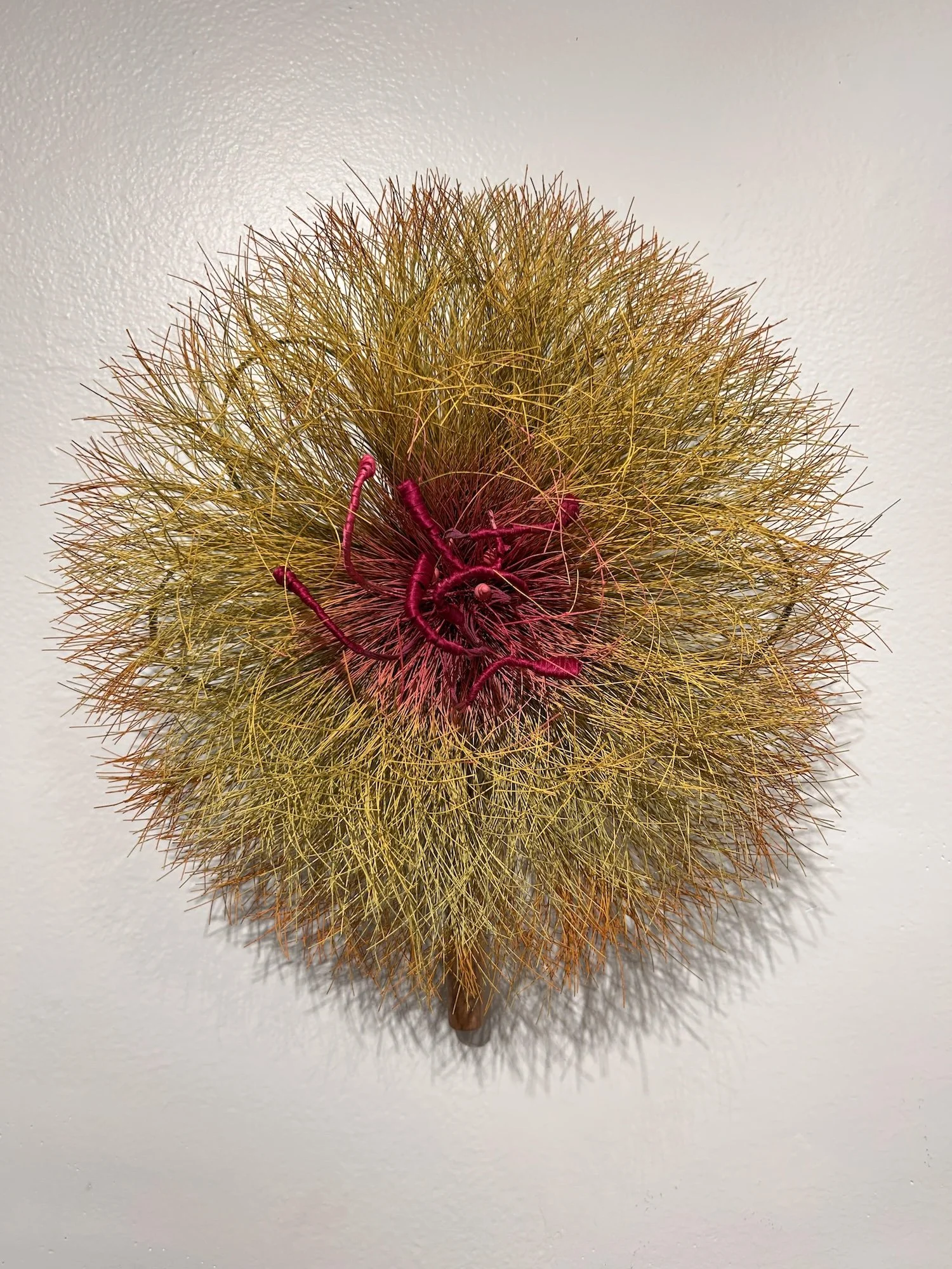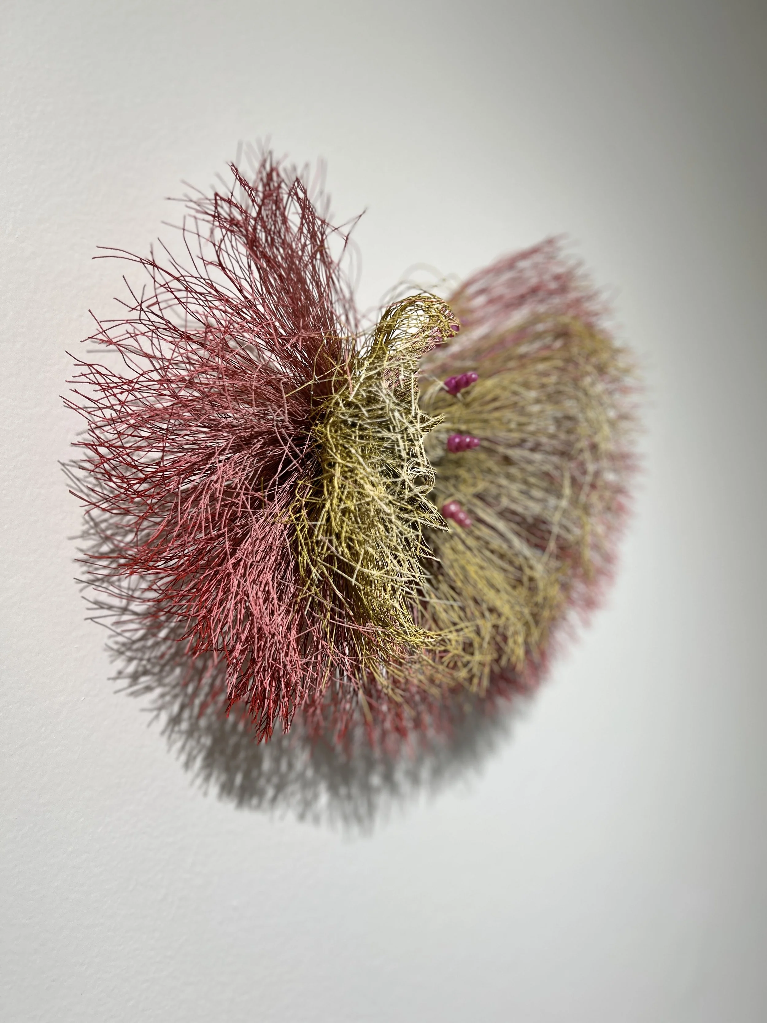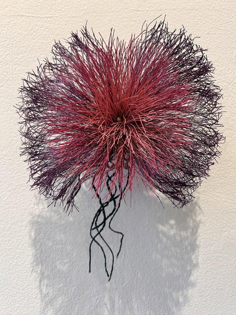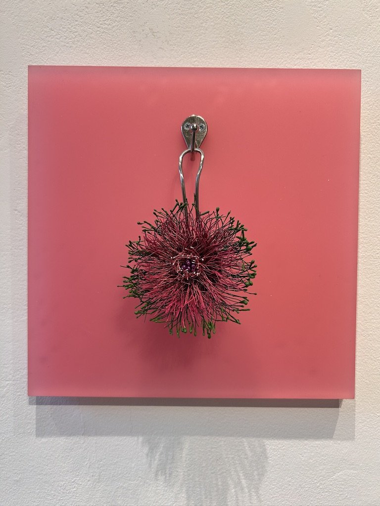 “Although her works are made of common, seemingly benign, everyday home-making materials, Kirsty Little creates assemblages that “blossom” into emblems of empowerment. On the surface, Kirsty’s blooming manifestations of wire, wax, pins, wood and acrylic create the appearance of calm, acquiesce, and uninterrupted beauty, but, on closer inspection, the works become embodiments of tension that turn art into activism. This critical re-working of “en-gendered” materials is the vehicle through which the artist confronts societal conflicts that continue to threaten the rights of women today.”
