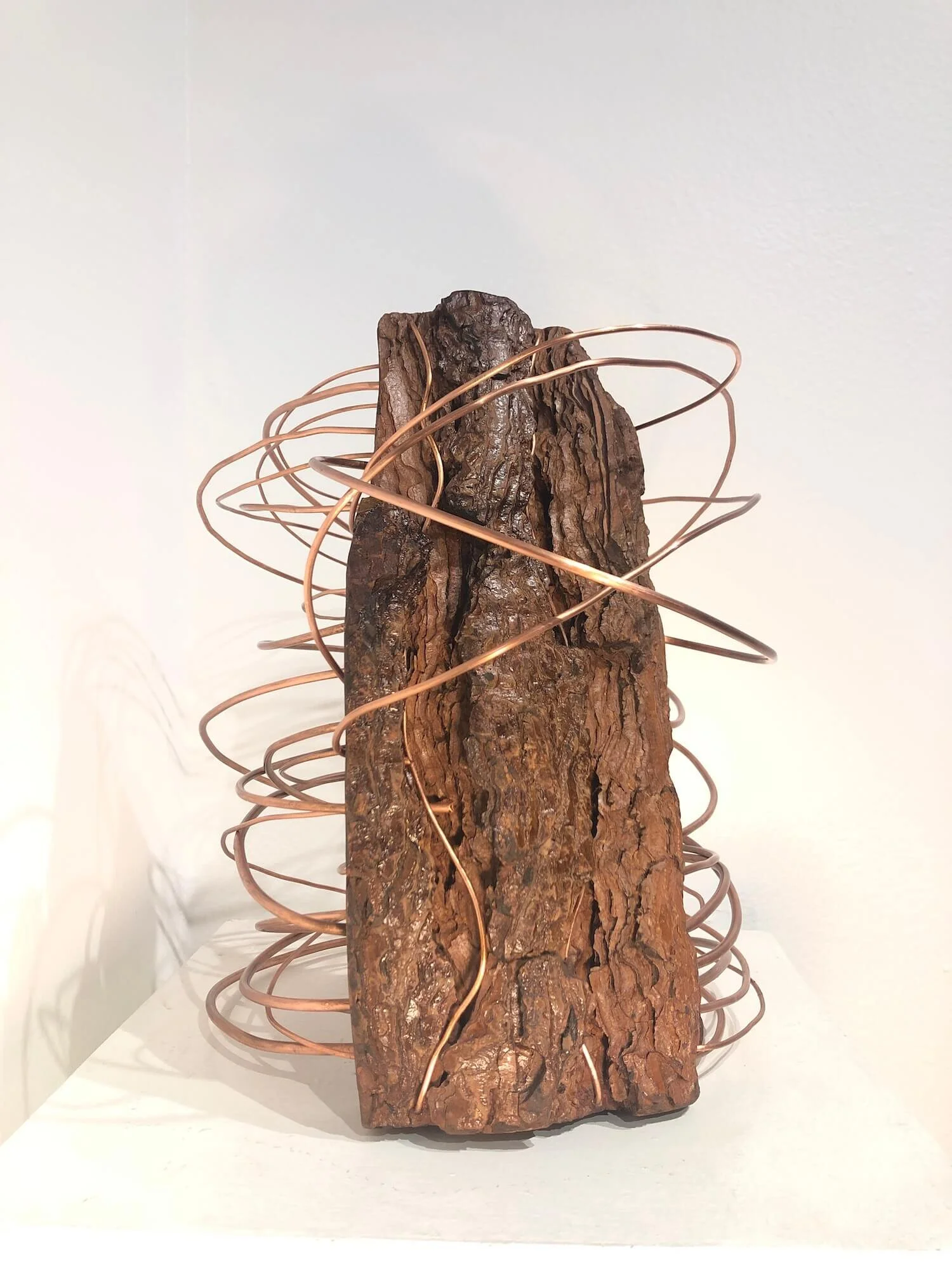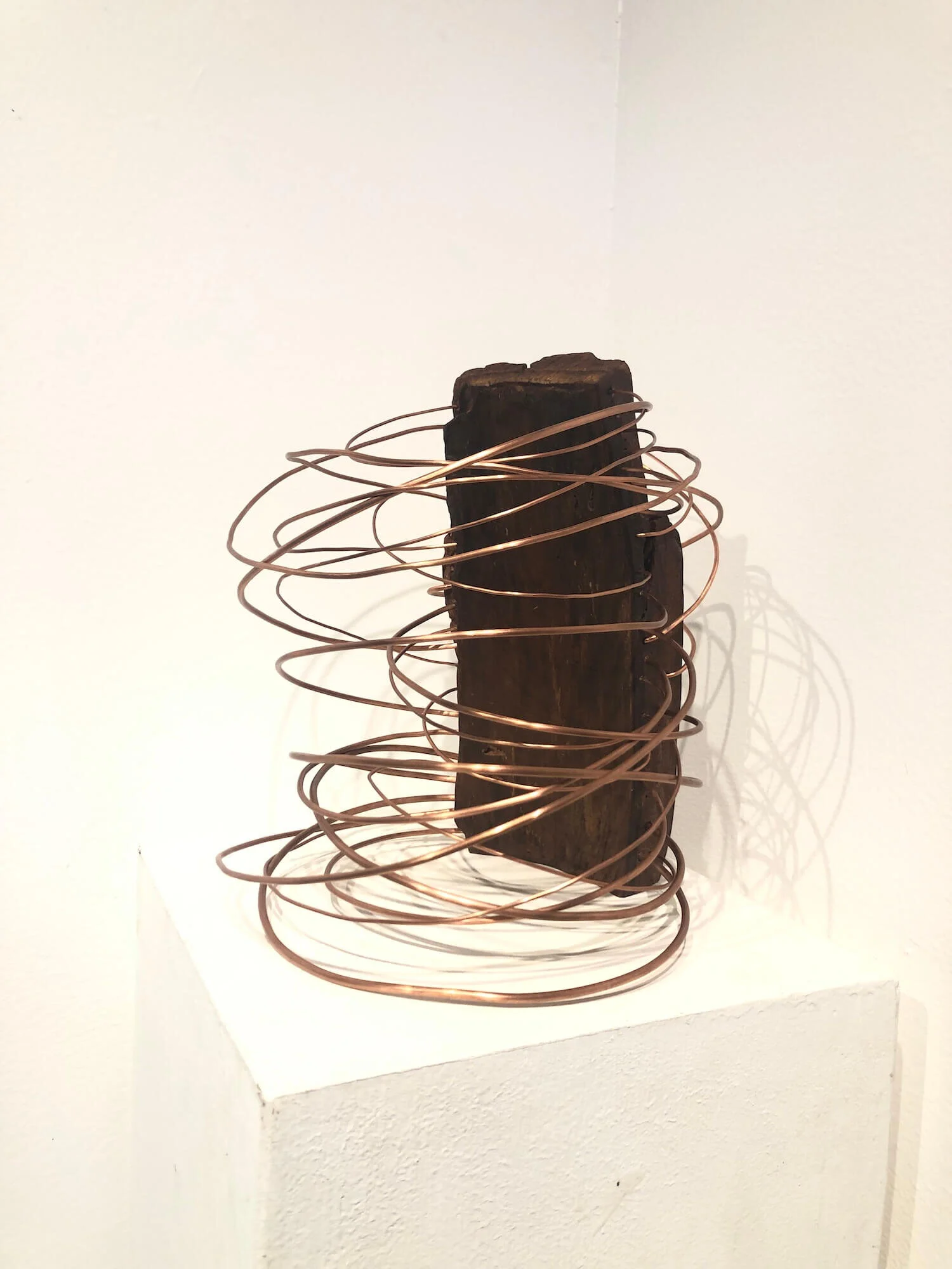 SCULPTURE / 2021 View fullsize View fullsize View fullsize The Irrepressible force & the Immovable Boulder2021Copper wire/Yellow pine13"H x 12"W x 12"D